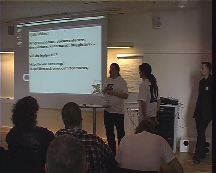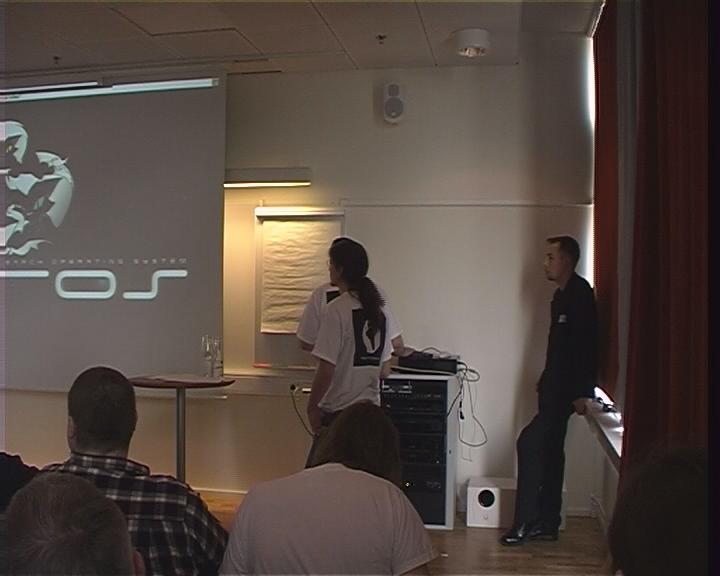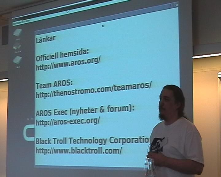 (720x576, 27 kB) The AROS presentation has just started. Introducing myself and Johan Grip.