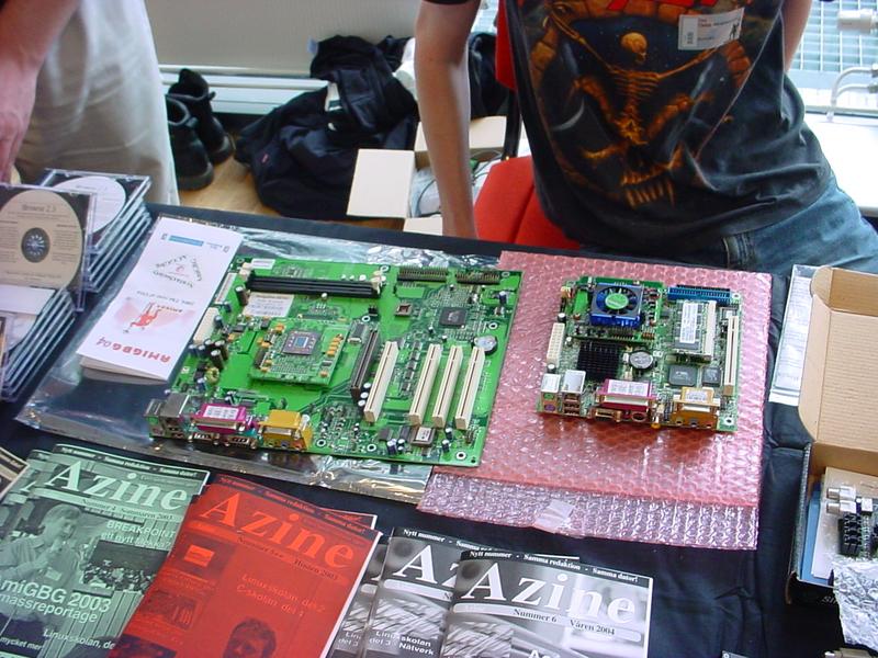 (800x600, 107 kB) AmigaONE and Micro A1 motherboards shown at Guru Meditation's booth.