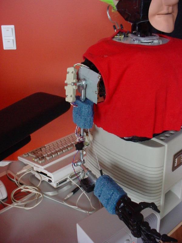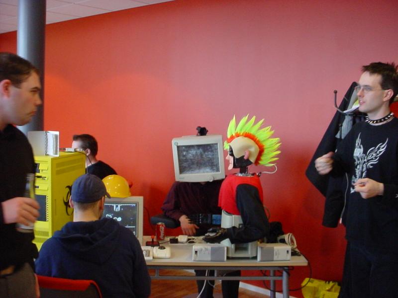 (800x600, 44 kB) Syntax Society had a robot on display. It was, ofcourse, controlled by an