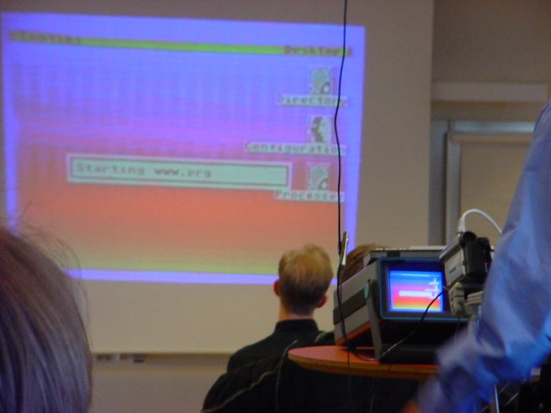 (800x600, 56 kB) Preparations before Jens Schoenfeld's presentation. That's a Commodore SX64,